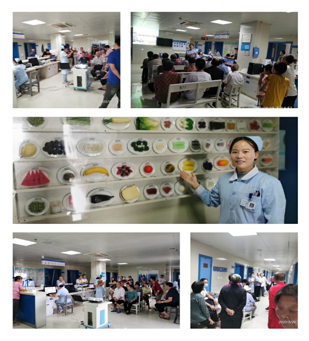 4、热衷公益事业。护理组每周二定期在病区开展患者健康教育,通过结合丰富多彩的食物模型,使“糖友们”更易理解并在生活中践行。随着人们生活水平的不断提高和生活方式的改变,糖尿病的发病率呈逐年上升趋势,为了引导人们树立健康意识,做好自我保健,让更多的人得到帮助,科主任及护士长经常带领团队深入社区、养老院、乡村开展义诊及糖尿病慢性并发症筛查活动,向大众科普糖尿病知识,提高老百姓对糖尿病等相关知识的了解,积极参与慢病的管理,提高人们的生活质量。