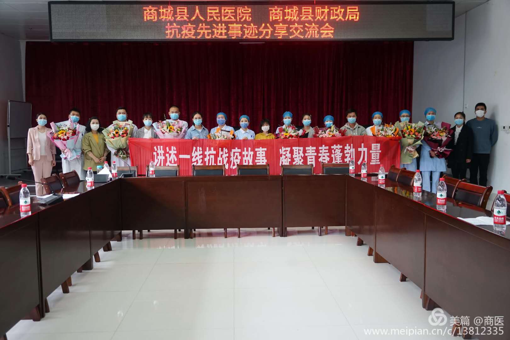 抗疫故事分享会在县医院病房楼一楼大会议室举行,来自财政局和县医院的4位青年朋友分享了抗疫故事。交流活动在感人至深的字里行间缓缓展开。县医院妇科尹麟基主任通过一篇抗疫日记分享了她在感染性疾病科留观病房的抗疫感受;重症医学科袁恩梅介绍了她在县新冠肺炎隔离病区的抗疫工作经历;增援信阳五院的95后护士王楠,分享了她在全市最激烈的抗疫战场展开生命救援时,所经历的剑拔弩张的紧张时刻和收获感恩时的幸福喜悦。她们的分享让我们感受到了广大医务人员面对肆虐疫情时的勇敢和从容。财政局杨旭主任以“资金通道连接的就是生命通道”的高度责任感展开了分享,让我们看到了财政人在疫情面前的责任与担当。最后,县财政局雷局长对青年职工致以节日的问候,高度赞扬了疫情期间青年医护人员不畏生死、冲锋一线的担当精神。分享会结束后,财政局青年代表为我们的抗疫医务人员献上鲜花。