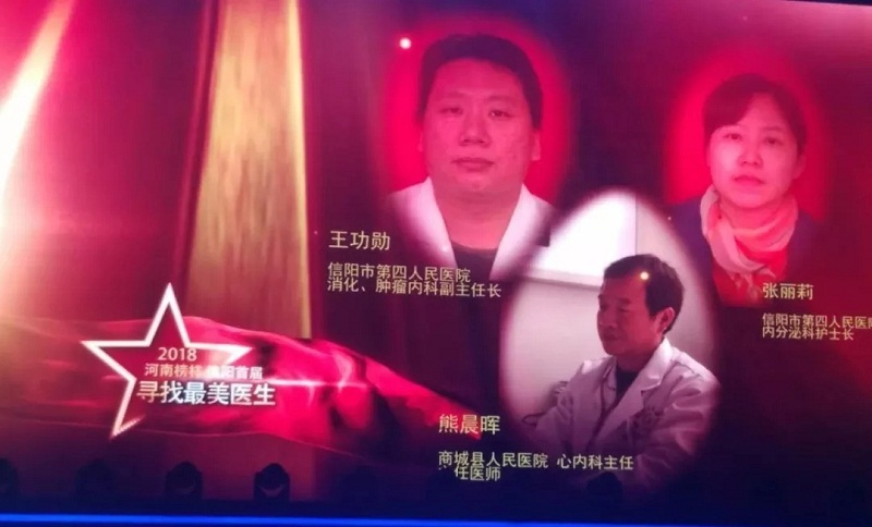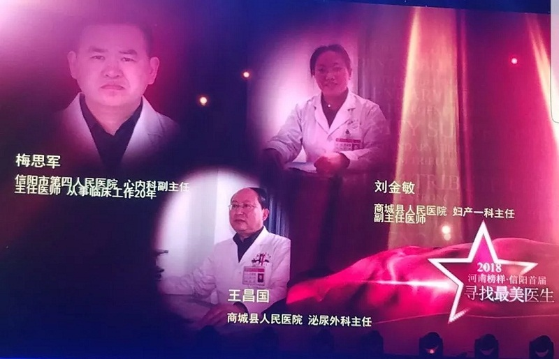 “这次评选,给出了明确的答案,那就是:精湛的技术、崇高的医德、良好的医风、贴心的服务!”5月19日下午,由大河报、大河客户端、大河网、大河健康网、信阳网、信阳健康网联合信阳市卫计委、中华医学会等部门和单位,在信阳市范围内举办的河南榜样·信阳首届“寻找最美医护"评选颁奖盛典,在信阳广电演播中心成功举行,商城县人民医院熊晨晖、周百武、王昌国、陈骧、杨梦华、刘金敏、余晶晶、董如利八名医务人员入选信阳首届“最美医生、最美护士”。