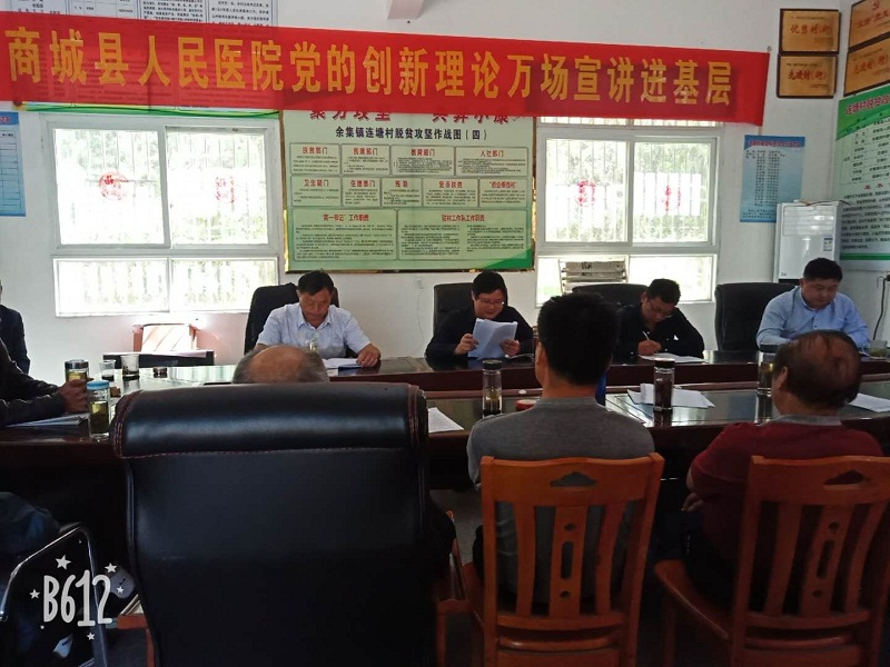 会议由余集镇党委副书记段宝嘉主持。段书记强调了此次宣讲会的必要性与重要性。副院长丁楠围绕十九大的精神主题,宣讲了新时代中国特色社会主义思想的内涵,并号召与会人员紧密团结在以习近平同志为核心的党中央周围,不忘初心,牢记使命,高举习近平新时代中国特色社会主义思想伟大旗帜,在上级部门的坚强领导下,凝心聚力、锐意进取,积极作为,全面提升工作水平,为实现全面贯彻党的十九大精神的良好开局,为打赢脱贫攻坚战,为加快我县美丽乡村、文明城镇、幸福商城建设做出新的更大贡献!